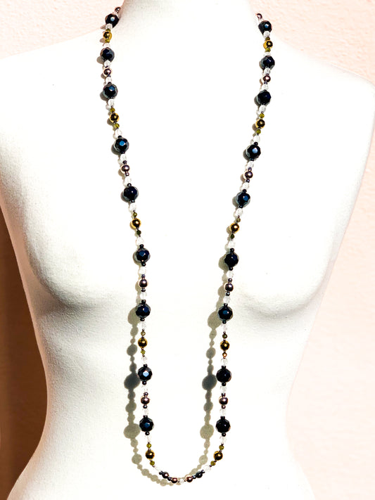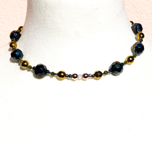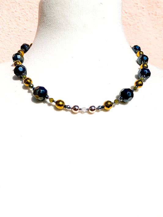 HAUTE - Onyx, Sunstone, Pyrite, Hematite, CZ, Mother of Pearl Necklace /H21