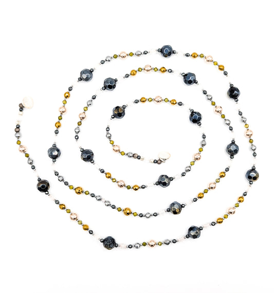 HAUTE - Onyx, Sunstone, Pyrite, Hematite, CZ, Mother of Pearl Necklace /H20