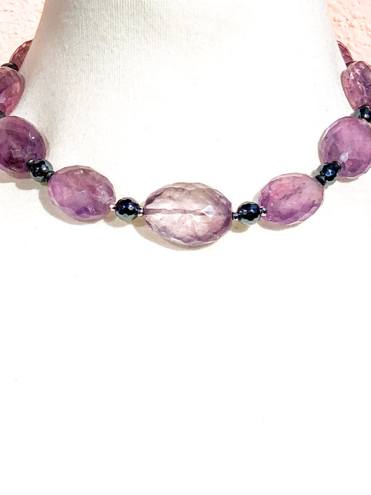 HAUTE : 3 colour Amethyst, CZ & Rock Crystal Necklace / H39