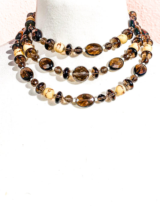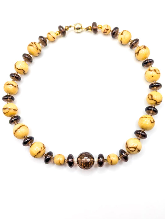 HAUTE : Smokey Quartz, Tiger Limestone, CZ Necklace /H22