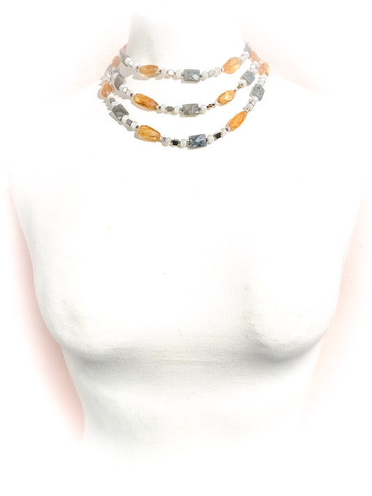 HAUTE : Citrine, Labradorite, Onyx, Moonstone Art Deco 2 Necklace / H10AD2