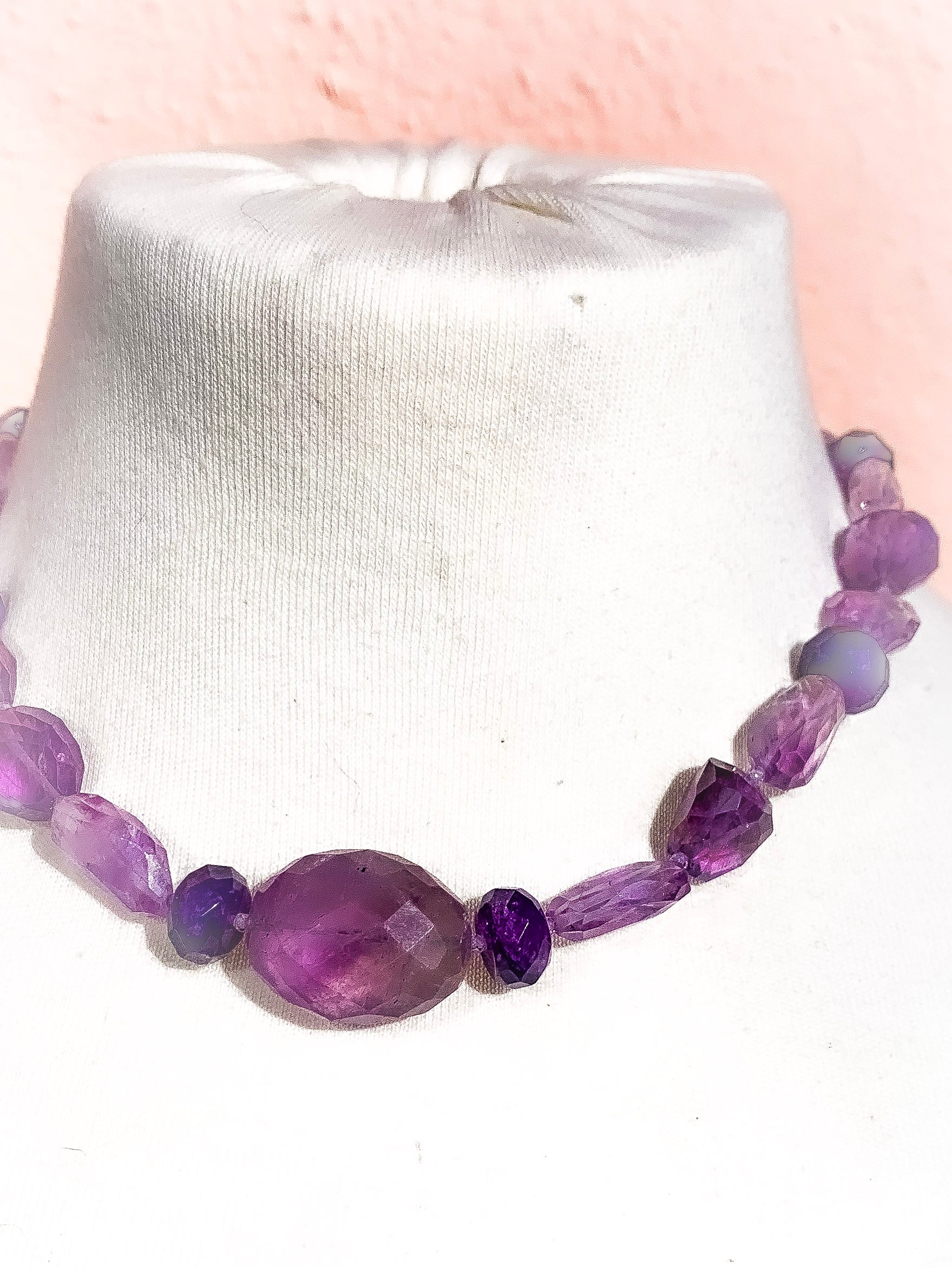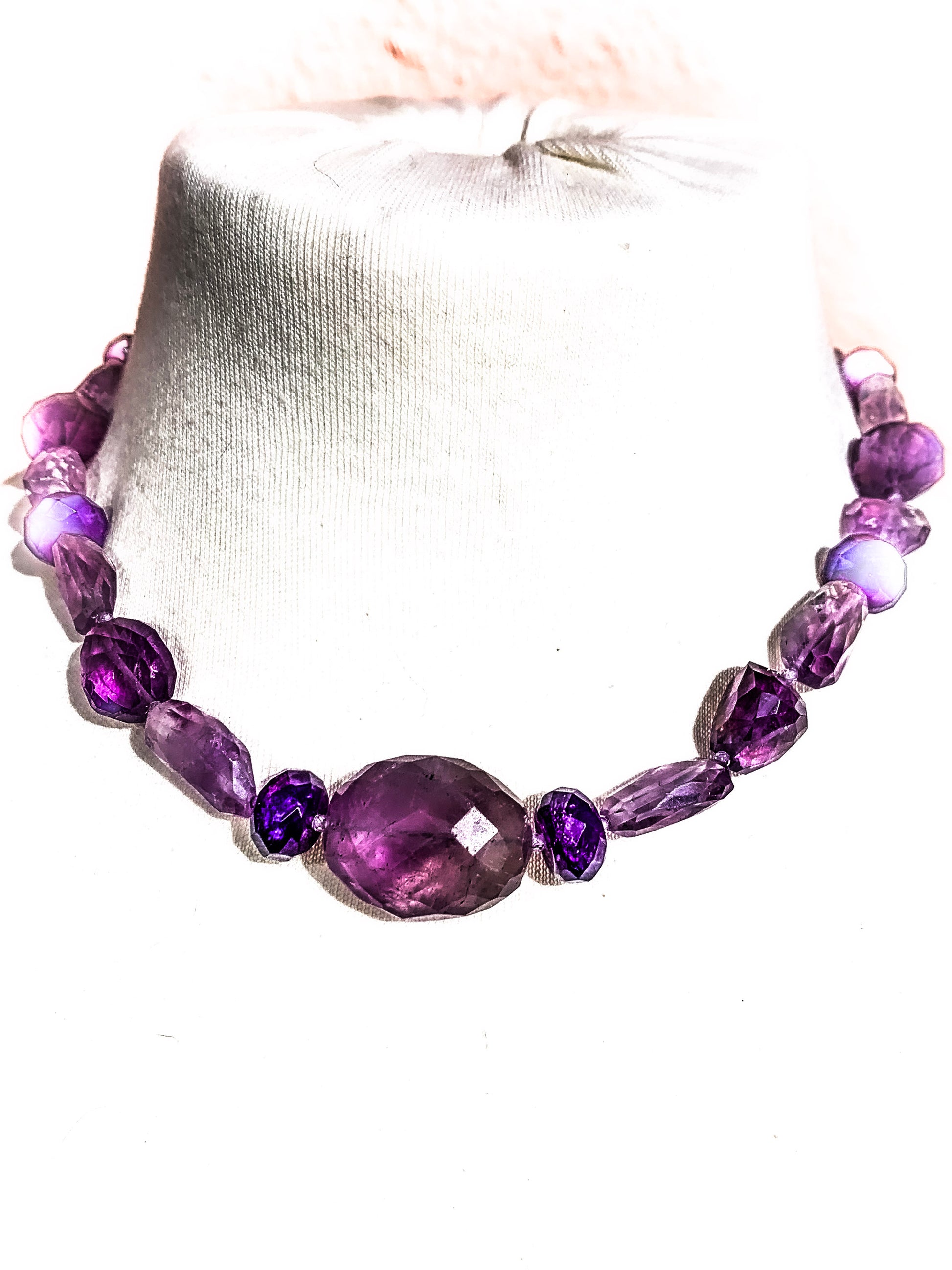 17” 3 Colour Amethysts (Faceted), Purple Cubic Zirconia, Rock Crystal (Faceted) w/ 925 Sterling Silver Magnet Necklace.