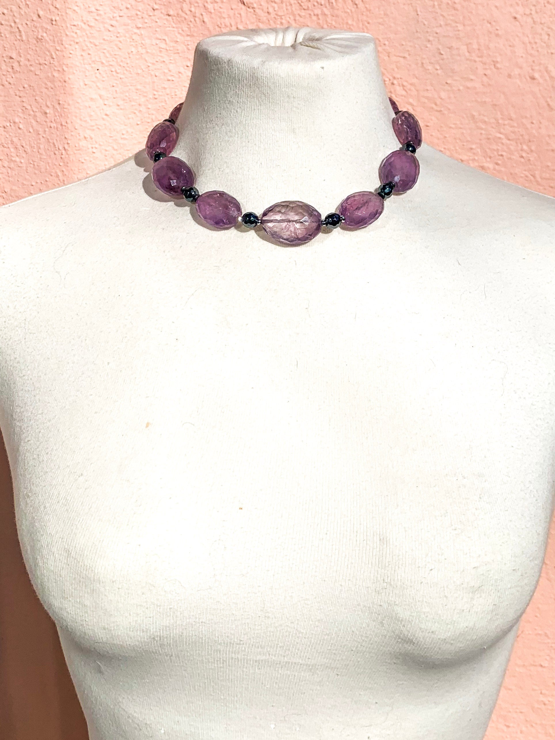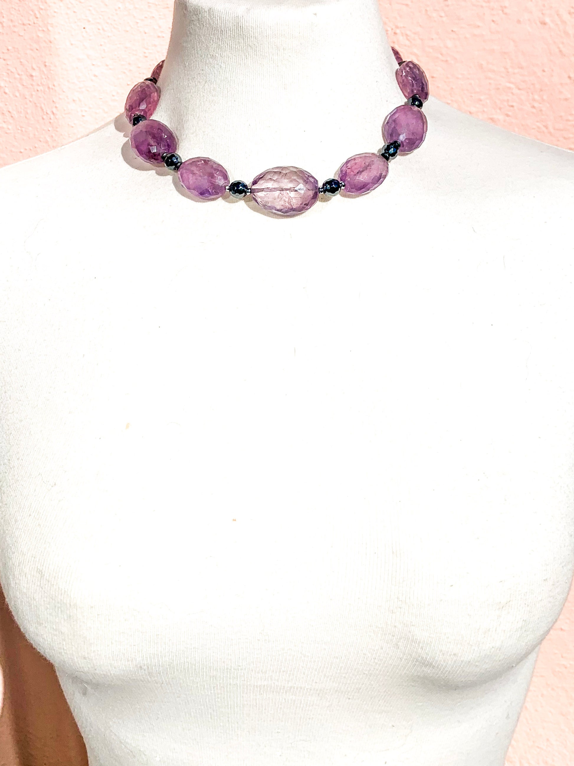 18” Amethyst ( Faceted), Oxidised Silver & Silver Hematite (Faceted & Matt) w/ 925 Sterling Silver Magnet : L.